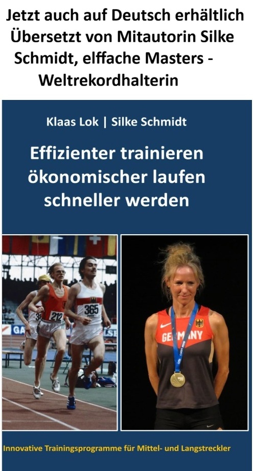 - Schema van 11-voudig wereldrecordhoudster bij de masters 50+, 55+ en 60+, de Duitse Silke Schmidt (zij vertaalde het boek in het Duits), in aanloop naar haar wereldrecord op de halve marathon. Lees over een Duitse loper (Andres Keil) die na 10 jaar ‘stilstand’ op 35-jarige leeftijd een flinke sprong vooruit maakte en al zijn pr’s verbeterde.
